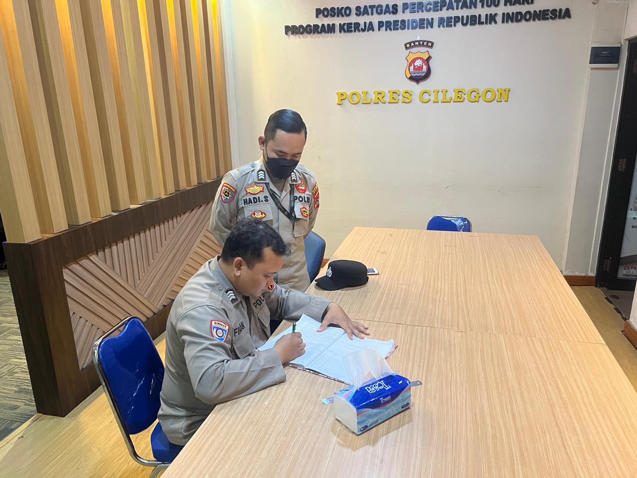Cilegon,Polres Cilegon Polda Banten Pada Sabtu/04/04/2026 Pukul 10.00 Wib, brigpol hadi s  selaku Personil siwas melaksanakan Pengechekan pada piket jaga 110 Polres Cilegon.