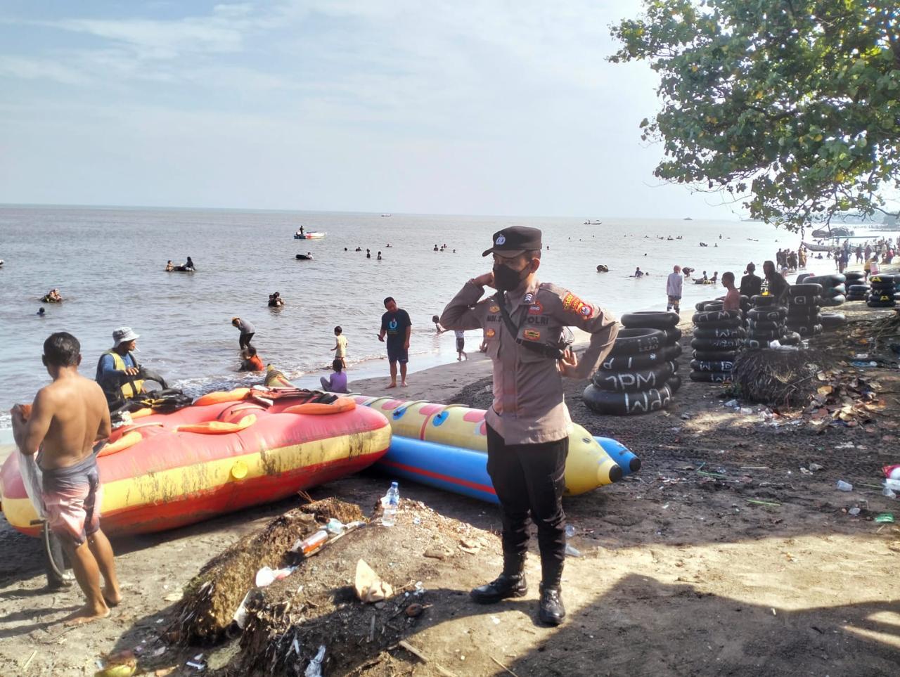 Cilegon,Polres Cilegon Polda Banten Pada Minggu 05 /04 /2025 Pukul 10.00 Wib, Personil Siwas Polres Cilegon, Brigadir Hadi Sudrajat melaksanakan kegiatan Pengamanan di tempat Obyek Wisata pantai anyer Kota Cilegon Tepatnya di kawasan pantai Pasri Putih Anyer Kota Cilegon.