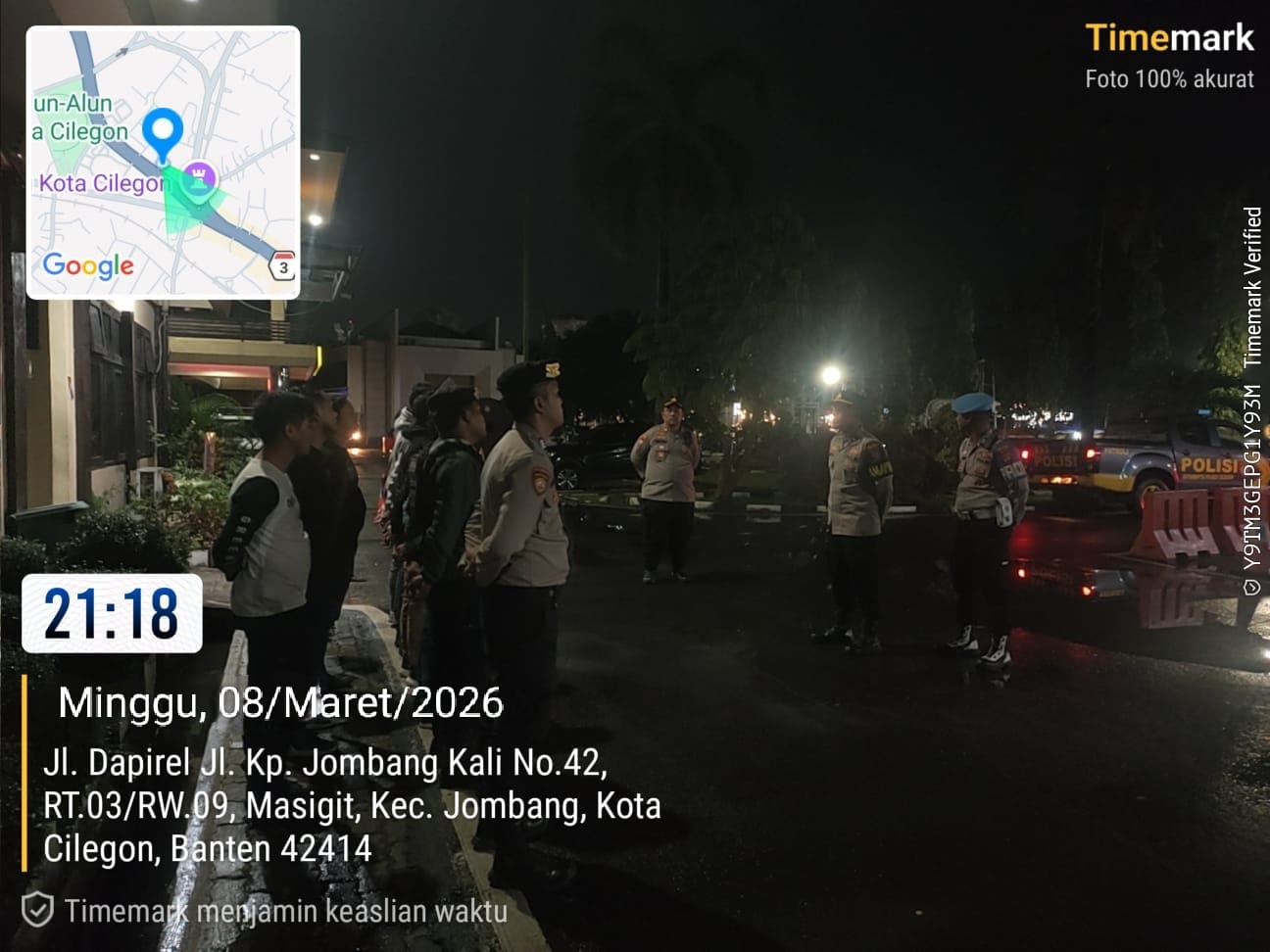 Pada malam hari yang tenang, jajaran personel dari Polres Cilegon melaksanakan patroli rutin guna menjaga situasi keamanan dan ketertiban masyarakat tetap kondusif. Patroli ini menyasar sejumlah titik rawan seperti kawasan permukiman, pusat keramaian, hingga jalur-jalur utama yang sering dilalui kendaraan pada malam hari.