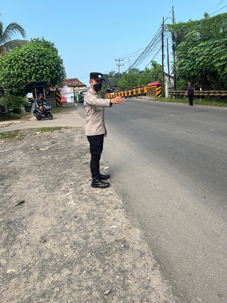 Cilegon,Polres Cilegon Polda Banten Pada Minggu 26 /04//2025 Pukul 08.00 Wib, Personil Siwas Polres Cilegon, Brigadir Hadi Sudrajat melaksanakan kegiatan pengaturan arus lalu lintas di Jalur arah  wisata Pantai Anyer.