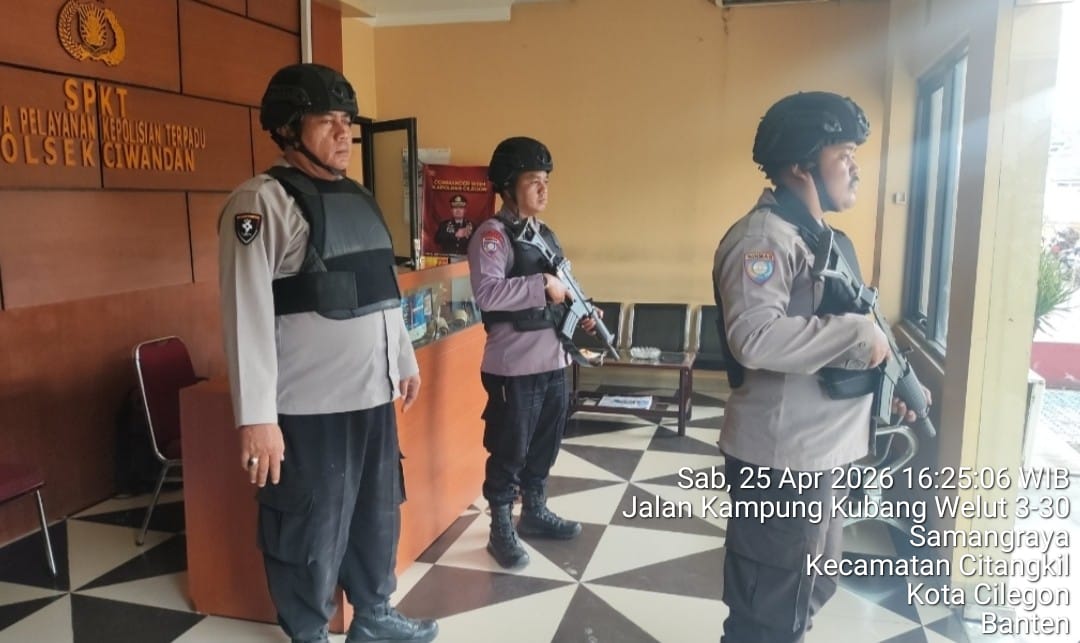 Cilegon – Polres Cilegon Polda Banten Guna mengantisipasi adanya potensi ancaman dan gangguan terhadap keamanan kantor maupun keselamatan personel piket jaga, Personel Polsek Ciwandan Polres Cilegon selalu tingkatkan kesiapsiagaan dan kewaspadaan dengan rutin menggelar kegiatan Sistem Pengamanan Mako (Sispam Mako), Sabtu (25/04/2026).