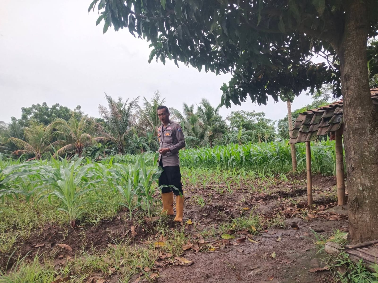 Pantau lahan jagung pok tani sinarjaya kecamatan.puloampel Desa Argawana oleh Bhabinkamtibmas Polsek Puloampel